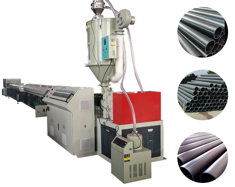 上料機--干燥機--單螺桿擠出機--色標擠出機--PE模具--真空箱--噴淋箱--牽引機--切割機--收卷機(堆放架)