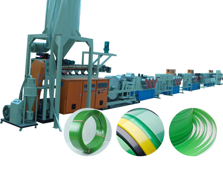 經過不斷改進,最新推出的PET(一出二)打包帶生產線,能達到同時生產二根打包帶,既節省了人力物力,又提高了雙倍產量,而且完全利用廢瓶片進行生產打包帶,其各項指標均達到了新料要求,實現了資源再生利用,減少了成本,增加了利潤。